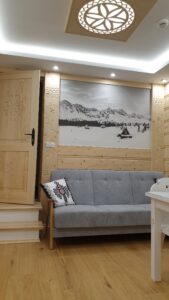 Apartament z 1 sypialnią posiadający duży balkon z pięknym widokiem na Giewont oraz Gubałówkę. Apartament jest wykończony z naturalnych materiałów w stylu regionalnym a zarazem z komfortowym wyposażeniem.