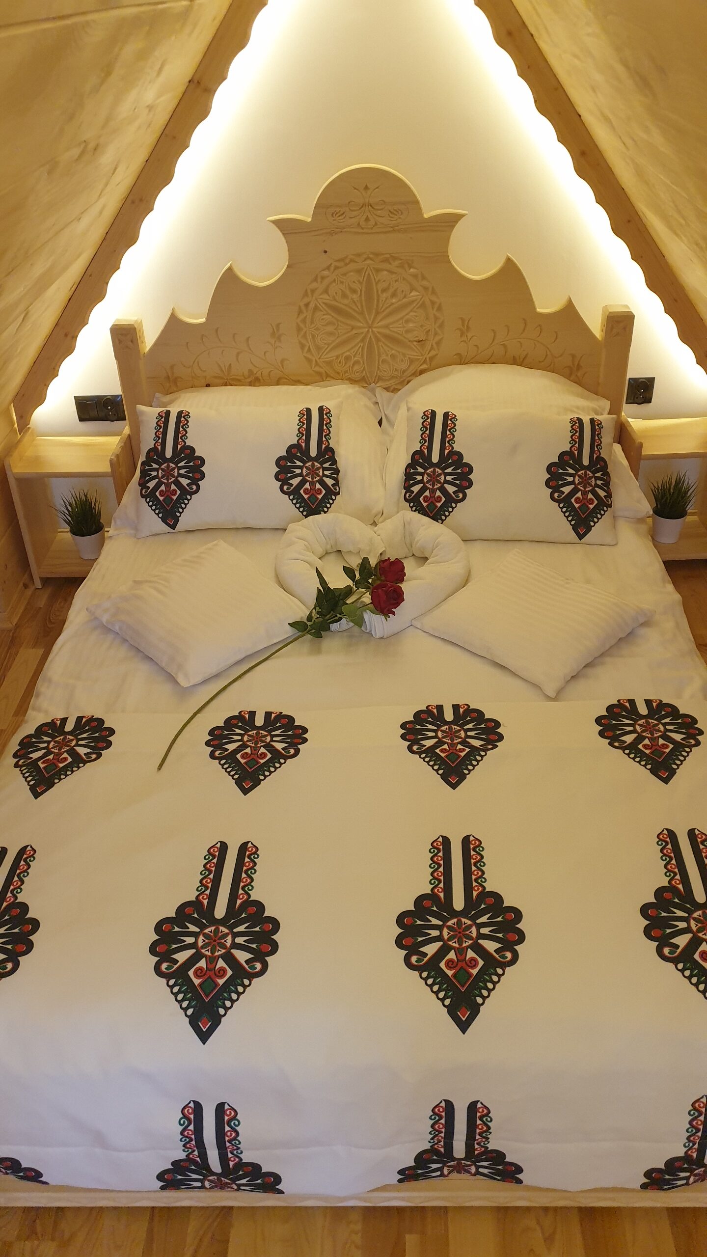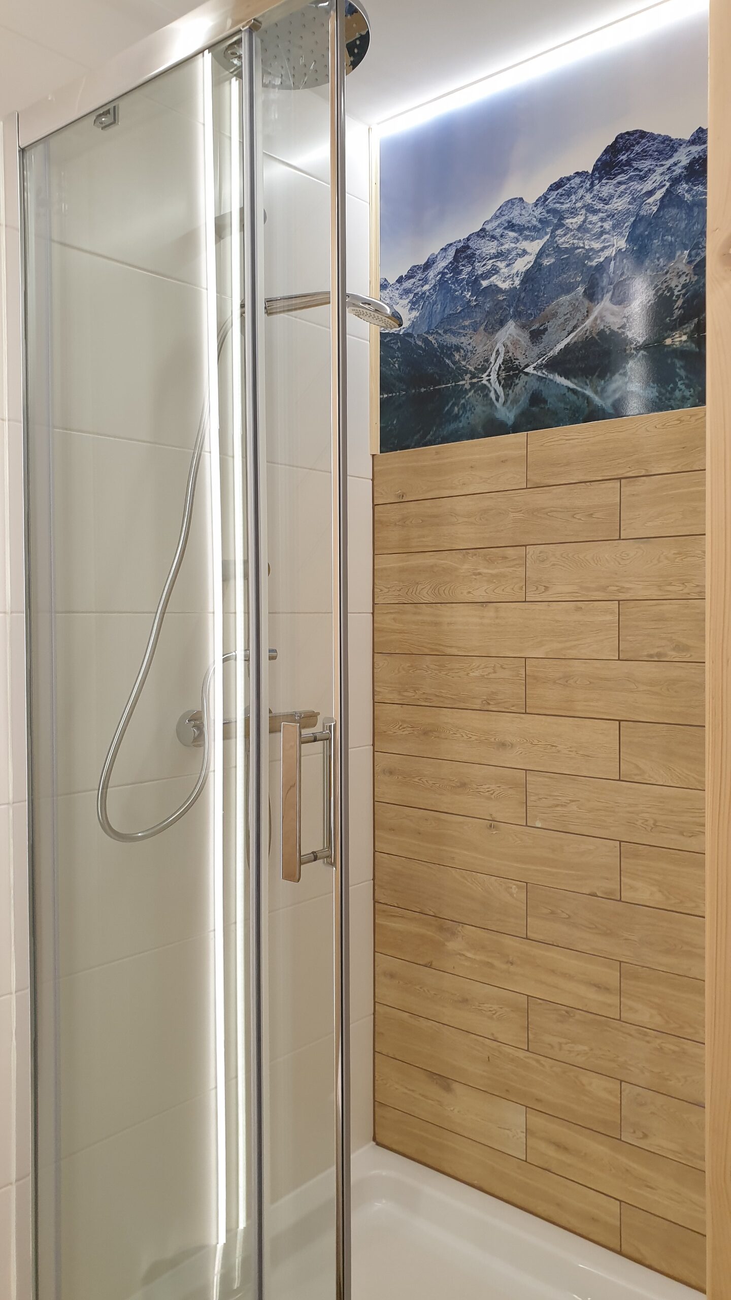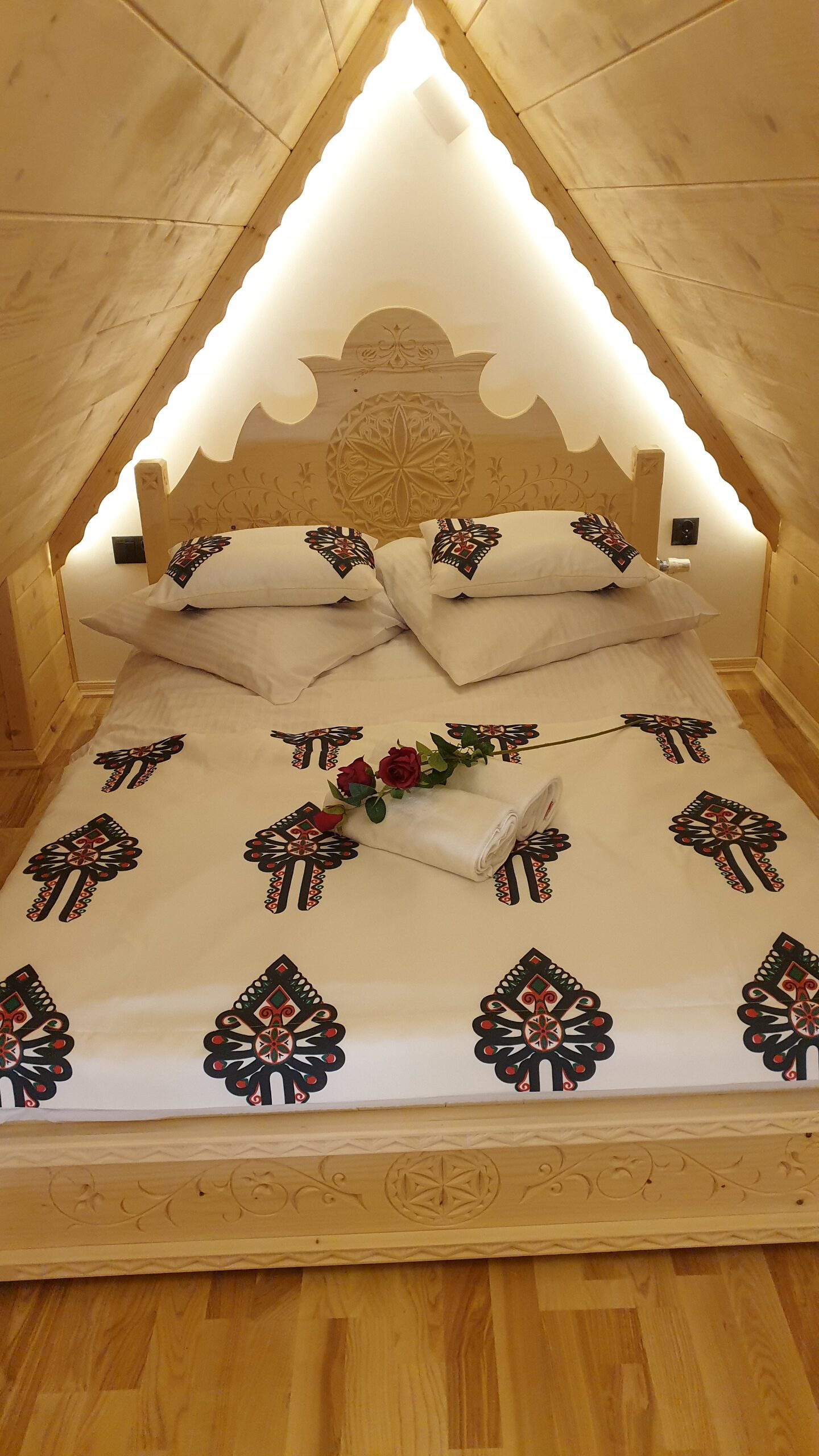 Apartament usytuowany jest na 2 piętrze willi. W apartamencie znajduje się łazienka, aneks kuchenny oraz część wypoczynkowa z narożnikiem (z funkcją spania dla 2 dzieci) i smart TV 50″. Na antresoli znajduje się stylowe regionalne łoże dla 2 osób.